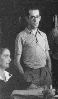 In late July 1939 Checa was sent back to France.[31] He was there when the pact was signed between Nazi Germany and the Soviet Union in August 1939, which led to the banning of the French and Spanish Communist parties.[32] He left the country at the end of 1939.[33] He was bound for the Americas, by order of Victorio Codovilla, and first settled in Cuba.[34] From here there were maritime contacts with Franco's Spain that allowed contact with the interior. Soon after he traveled to Mexico.[13] There he lived under the false identify of "Pedro Fernández Izquierdo" which he had obtained in Cuba. Although not part of the American secretariat of the PCE, he attended meetings on the party organization and Comintern missions in Latin America. His activities in Mexico are little known, but some reports implicate him in the murder of Leon Trotsky. According to a confidential report from another communist militant to the PCE leadership in Moscow, writing about Checa and the murder of Trotsky, "the party [in Mexico] has been informed that the [Mexican] police has a file containing detailed records of the activity of the Spanish comrades. It is recorded of Checa that he works on behalf of the GRU, has all the threads of the conspiracy in his hands and is living under an assumed name".[7] Checa's health was delicate, since he had contracted tuberculosis during the Civil War.[35] He was bedridden after March 1941, and died on 6 August 1942 due to complications from an appendectomy.[36][35] The guard of honor for his body consisted of Joan Comorera, Antonio Mije, Ángel Álvarez and Federico Melchor.[4]
