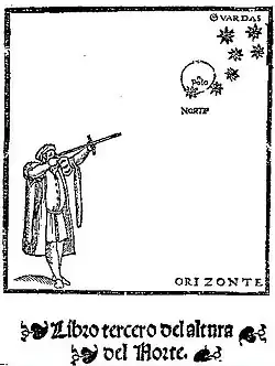 Pedro de Medina (1493 – Seville, 1567) was a Spanish cartographer and author of navigational texts. His well-known Arte de navegar ("The Art of Navigation", 1545) was the first work published in Spain dealing exclusively with navigational techniques (Martín Fernández de Enciso's Suma de Geographia, 1519, which gave ample geographical information already contained solar declination tables with explanations and the corrections for finding the latitude by measuring the height of Polaris).
