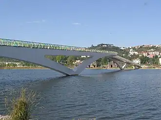 Spanning the Rio Mondego, the 600 feet (180 m) structure is the city's first footbridge and has become locally known as the "bridge that doesn't meet."