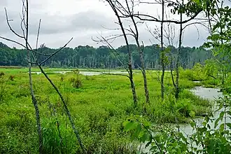 Cooperative farming in field impoundments, water level management, and the bottomland hardwood forest along Brown Creek provide excellent habitat for waterfowl and other wildlife. Wintering waterfowl numbers fluctuate greatly, but can exceed 10,000 birds yearly. The refuge also supports a small population of wintering Southern James Bay Canada geese. Local numbers of wintering migratory geese have dwindled in recent years, but the refuge remains an important wintering area for the remaining geese and thousands of ducks. Pee Dee Refuge is a few hundred yards from the private Lockhart Gaddy Wild Goose Refuge. In the 1950s, Gaddy's pond wintered more than 10,000 Canada geese a year.[2]