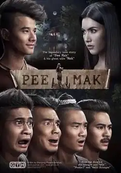 Pee Mak (Thai: พี่มาก..พระโขนง; RTGS: Phi Mak Phra Khanong) is a 2013 Thai supernatural horror comedy romance film directed and co-written by Banjong Pisanthanakun.[2] The story is an adaptation of the Mae Nak Phra Khanong legend of Thai folklore.[2] The film stars Mario Maurer as Mak, Davika Hoorne as Nak, and Pongsathorn Jongwilas, Nattapong Chartpong, Auttarut Kongrasri and Kantapat Permpoonpatcharasook.[2] The film was a major commercial success upon its release and became Thailand's highest-grossing film of all time.[3][4][5]