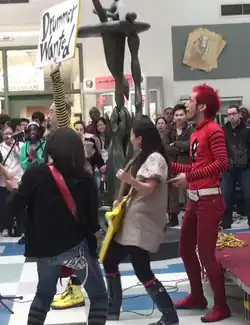 Peelander-Z performing at the Asian Heritage celebration in New York; left to right: Peelander Pink, Peelander Yellow and Peelander Green | |