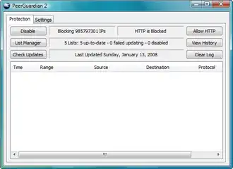 ![]() PeerGuardian 2 under Windows Vista | |