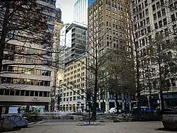Pegasus Plaza is a public park located in downtown Dallas, Texas. Located at the corner of Akard and Main Street in the Main Street District, the plaza takes its name from Pegasus, the iconic sign atop the adjacent Magnolia Hotel and the mythical flying horse. The shaded plaza includes several fountains and is used for concerts, festivals and Christmas celebrations.