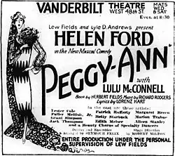 In London, the musical opened in the West End at Daly's Theatre on July 29, 1927 and ran for 130 performances. Directed by Lew Fields, Dorothy Dickson starred as Peggy-Ann.[1]
