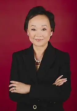 By March 2018, the couple had a net worth of $3.3 billion.[16] She was also #12 on America's Self-Made Women list for 2019 by Forbes.[11] In October 2019, her development company CFT NV Developments LLC purchased land in Hawaii for $10 million. She and her husband are the Hawaii master franchisees for Raising Cane's Chicken Fingers.[17] She is on the boards of the Los Angeles branch of the Federal Reserve Bank of San Francisco, the United Way of Los Angeles, Methodist Hospital of Arcadia and the Peter F. Drucker School of Management.[18]