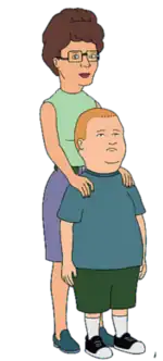 ![]() Peggy (back) and her son Bobby as they both appear in the first thirteen seasons (1997–2010) | |