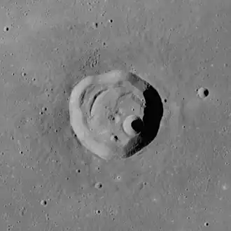 Peirce is a small lunar impact crater in the western part of Mare Crisium. That dark, circular lunar mare is located in the east-northeasterly part of the Moon's near side. It was named after the American mathematician Benjamin Peirce.[2] Peirce lies to the north of the craters Yerkes and Picard, and southeast of Macrobius located outside the mare. Just over a crater diameter to the north of Peirce is the smaller Swift. To the northwest is the wrinkle ridge Dorsum Oppel.