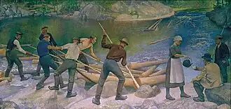 In 1895, Halonen and his family settled down in a house with a studio on Lake Tuusula in Tuusula, Finland. Here the Halonen family lived in an imposing pinewood villa known as ‘Halosenniemi’. Halosenniemi was designed by Pekka Halonen himself and his brother Antti Halonen and was completed during the winter of 1901–02.[10] Adjacent to the house, Halonen built a sauna, which in typical Finnish tradition also served as a laundry. The landscape near Halosenniemi was an important source of inspiration for his art. In Tuusula Halonen had a wide circle of artist friends and relatives which provided him with a daily source of social and cultural stimulation.[11]