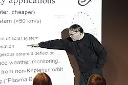 Pekka Janhunen is a Finnish space physicist, astrobiologist, and inventor. He is a research manager at the Finnish Meteorological Institute's Space and Earth Observation Centre and a visiting professor at the University of Tartu, Estonia. He is also senior technical advisor at Aurora Propulsion Technologies, a startup company operating in the space sector. Janhunen studied theoretical physics at the University of Helsinki and earned his Ph.D. in space plasma physics simulations in 1994. He has also published a theory on the origin of multicellular life. Janhunen is best known for his electric solar wind sail invention.[1][2]