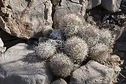 In cultivation, it prefers a well-draining inorganic substrate, as the roots are easily susceptible to rot. Sneed's cactus must be kept completely dry during its dormant season in the winter months, and atmospheric humidity must be kept at a low. Regular watering may be done throughout the spring and summer once the growing season has resumed, provided the soil is well-drained. Fertilization requirements are simple, consisting of a high-potassium fertilizer during the summer growing season for Sneed's feed, and seed propagation is equally straightforward, with seeds sown after the last frost in spring typically germinating within one to two weeks provided they are well-ventilated and kept out of direct sun. Sneed's pincushion can also be propagated asexually via offsets from the base of the plant.[11][12]