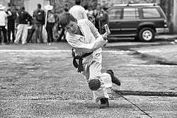 Pelota purépecha (Spanish for "Purépecha ball"), called Uárukua Ch'anakua ( "a game with sticks"[1]) in the Purépecha language, is an Indigenous Mexican sport similar to those in the hockey family. A common variant, distinguished as pasárutakua in Purépecha, uses a ball which has been set on fire and can be played at night.[2][3] It has a league,[1] several practicing communities[2] and about 800 players across Mexico as of 2010.[4] It is one of 150 pre-Hispanic Mexican games at risk of dying out along with Ulama.[4]