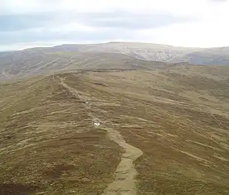 The summit is merely a grassy bump on the ridge marked by a pile of stones.[1]