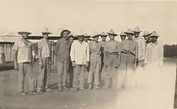 The exact number of prisoners and deaths in Clevelândia was a constant concern in the press and historiography.[58] The lowest number used by Pinheiro and Samis is 946, provided by the report Journey to the Cleveland Colonial Nucleus, presented by Oldemar Murtinho, director of the Secretariat of State Section to the Minister of Agriculture in 1926. The report identified 262 escapes and 491 deaths. Romani quantified around 1,200 exiles, based on the "classification drawn up by the police in the sending lists", and noted that there are many known cases of prisoners missing from the lists. The highest estimate was 1,630 men, according to Manoelzinho dos Santos.[59][60] Security was provided by a detachment of the 26th Battalion of Caçadores,[61] initially comprising 26 soldiers and later reinforced by another 120 when escapes became frequent.[52]