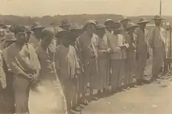 There were officers in the colony,[72] but the military exiles were mainly of lower ranks. The government intended to disqualify their hierarchical position, while anarchists wanted to identify them as "sons of the people" to incorporate them into the revolution.[73] The civilians were opposition activists, workers (mainly in the printing and construction sectors), trade unionists (including leaders held on the Campos prison ship), workers' newspaper writers and common criminals. Many were foreigners.[74][75] Some of the civilians were arrested as suspects and had neither a connection with political dissent nor the position of common criminals.[76] What the police called "undesirables" included both common criminals (thieves, murderers, scoundrels and swindlers, the "dregs of society") as well as beggars, capoeiras and minors removed from the streets as a policy of "social prophylaxis".[53][77]