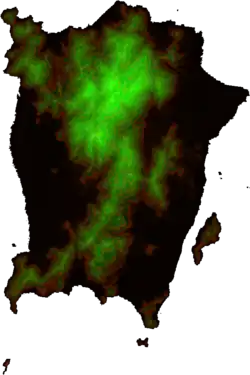The island's terrain is irregular and consists of a hilly and mostly forested interior. The coastal plains are narrow, with the most expansive one being at the northeastern cape.[2] It was at this cape where the early development of George Town began, eventually reaching down the eastern seaboard. Mangrove swamps are prevalent along the western shoreline of the island. Combined with the hills at the centre of the island, urbanisation along the western half of the island has been limited.