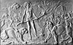 Collarwali, a daughter of Badi Mada, starred with her mother in the BBC Wildlife Special Tiger: Spy in the Jungle, which popularised the reserve.[8][9] She became one of India's best known tigers, giving birth to 26 cubs in 7 litters as of April 2017[7] and 29 cubs in 8 litters by her death in January 2022 at the age of 16.[8] Born in 2005 and initially dubbed T-15, she acquired the name Collarwali ('The One With a Collar') after being the first tigress in the park fitted with a radio collar, in 2008. She was unusually large for a female and because she was comparatively friendly, was the most frequently seen tiger in the park. In 2010 she gave birth to an unusually large litter, 5 cubs.[8] Of Collarwali's cubs, records indicate 14 of the 18 born by 2013[9] and 17 of the 22 from her first 6 litters survived to adulthood.[7] They have dispersed to other parts of Pench and some may have crossed over to other tiger reserves such as Kanha National Park. For example, in December 2010,male T-39, born in her second litter in October 2008, travelled more than 50 km to near the boundary of the reserve.[10] She died in January 2022 and was cremated by a local tribal leader.[11][12]