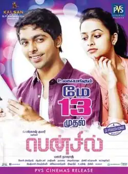 Pencil is a 2016 Indian Tamil-language teen thriller film written and directed by debutant Mani Nagaraj. It is based on South Korean film 4th Period Mystery.[1] The film stars G. V. Prakash Kumar and Sri Divya, with the former also composing the film's music. It was released on 13 May 2016,[2] and received mixed reviews.[3]