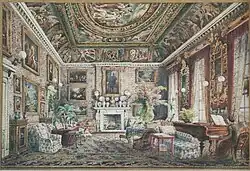 The house was a great meeting place for figures of the Scottish Enlightenment, who came to view its collection of paintings, including a noted ceiling painting of Ossian's Hall and four scenes from the life of Saint Margaret by Alexander Runciman.[6][7]