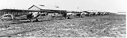![]() A 1918 photograph of a pilot with a Curtiss JN-4 Jenny at Penn Field, Austin, Texas | |
