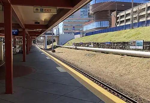 Penn Medicine Station (formerly University City station) is a train station in the University City section of Philadelphia, Pennsylvania on the SEPTA Regional Rail system. The station serves the area around the University of Pennsylvania, and is located at South Street and Convention Avenue. Located on the West Chester Branch, it serves the Airport, Fox Chase, Lansdale/Doylestown, Manayunk/Norristown, Media/Wawa, Wilmington/Newark, Warminster, and West Trenton Regional Rail services. In 2013, this station saw 3,091 boardings and 2,950 alightings on an average weekday.[5]