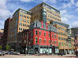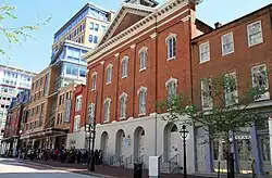 Penn Quarter is a historic neighborhood of Downtown Washington, D.C., located north of Pennsylvania Avenue, in Northwest D.C. Penn Quarter is roughly equivalent to the city's early downtown core near Pennsylvania Avenue and 7th Street NW,[1][2] Penn Quarter is an entertainment and commercial hub, home to many museums, theaters, cinemas, restaurants, bars, art galleries and retail shops. Landmarks include the Capital One Arena, the National Portrait Gallery, the Harman Center for the Arts, and others. The area is home to a popular farmers market and several food, wine, art, and culture focused festivals.
