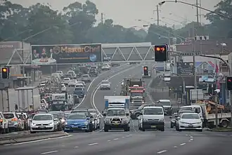 In 2015 NRMA members voted the Pennant Hills Road as the second worst road in New South Wales and the Australian Capital Territory, with approximately 5,000 heavy vehicle movements per day.[4] NorthConnex, a 9-kilometre (5.6 mi) motorway tunnel opened on 31 October 2020, runs parallel to Pennant Hills Road and links M2 Hills Motorway at West Pennant Hills with Pacific Highway and Pacific Motorway at Wahroonga. NorthConnex aims to reduce congestion and improve traffic flow along part of the Pennant Hills Road, reducing air and traffic pollution.[5]