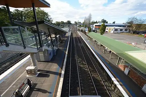 Pennant Hills station opened on 17 September 1886.[3] Immediately north of Pennant Hills, a short four track section of the Main Northern line begins which runs to the next station at Thornleigh.[4]