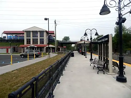 Pennsauken Transit Center (signed as Pennsauken on the Atlantic City Line platforms) is a New Jersey Transit train station in Pennsauken Township, in Camden County, New Jersey, United States. It serves as an intermodal transfer station between the River Line light rail and the Atlantic City Line commuter rail, as well as serving the Delair neighborhood for Pennsauken and the nearby industrial park. The station cost $39.747 million, of which $39.104 million was funded by the American Recovery and Reinvestment Act of 2009.[3] After two years of construction, the Pennsauken Transit Center opened on October 14, 2013.[1][3]