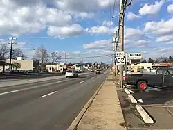 Pennsylvania Route 132 (PA 132) is a state highway in southeast Pennsylvania. The route, which is signed east–west, runs northwest to southeast through Bucks County in suburban Philadelphia from PA 611 in Warrington southeast to Interstate 95 (I-95) in Bensalem. PA 132 is a commercial route lined with shopping centers throughout much of its 15-mile (24 km) length. It is named Street Road for its entire length and is five lanes wide for much of its length. The route was also designated as the Armed Forces and Veterans Memorial Highway in 2005. From west to east, PA 132 intersects PA 263 and PA 332 in Warminster; PA 232 in Southampton; PA 532 in Feasterville; and U.S. Route 1 (US 1), the Pennsylvania Turnpike (I-276), PA 513, and US 13 in Bensalem. Street Road was included in William Penn's survey plans and completed by 1737. The road was paved by 1911 and received the PA 132 designation between US 611 (now PA 611) and US 13 by 1927. The route was widened into a multilane highway and extended east from US 13 to I-95 by 1970. An interchange with the eastbound direction of the Pennsylvania Turnpike opened in 2010.