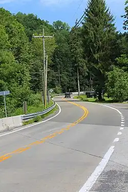 At its inception in the late 1920s, PA 307 was little more than a short loop of its namesake, PA 7 (modern-day US 6), extending from that route west of Clarks Summit to its concurrency with the Lackawanna Trail in northern Scranton. At the time, PA 7, and later US 6, followed all of Winola Road out of Clarks Summit.[6] PA 307 has since been extended twice. Its first extension occurred in 1935, when the Scranton-Pocono Highway was completed; to bridge the gap between the two highways, PA 307 formed a concurrency along US 11 through Scranton.[7] In 1955, US 6 was rerouted onto a new alignment from Factoryville to Tunkhannock, and so PA 307 was extended west along this old alignment, terminating at the previously existing PA 92.