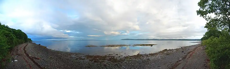 Penobscot Bay (French: Baie de Penobscot) is an inlet of the Gulf of Maine and Atlantic Ocean in south central Maine, a stretch known as Midcoast Maine, in a broader Atlantic region known as Down East. The bay originates from the mouth of Maine's Penobscot River, downriver from Belfast. Penobscot Bay has many working waterfronts including Rockland, Rockport, and Stonington, and Belfast. Penobscot Bay is between Muscongus Bay and Blue Hill Bay, just west of Acadia National Park.