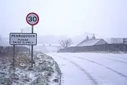 The name Penruddock is Cumbric. With both red soil and red sandstone in the area to the south, the word Penruddock is likely derived from the word Pen (hill) and a cognate of the Welsh word rhudd (red). Red Hill is also one proposed meaning for the much debated name of Penrith,[1][2] an area called Redhills now lies between the two.