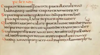 Pentadius' works are preserved under his own name in four manuscripts, the earliest being the Codex Salmasianus of about 800 followed by the 9th-century Codex Thuaneus and Codex Vossianus Lat. Q 86.[9][10] Only one of his epigrams is copied under his name in Codex Parisinus Lat. 8069, but it is found in other manuscript under other attributions (including to Cicero).[11]