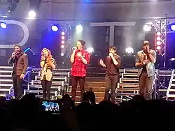 ![]() Pentatonix at the Macy's Thanksgiving Day Parade in 2023. From left to right: Matt Sallee, Mitch Grassi, Kirstin Maldonado, Scott Hoying and Kevin Olusola | |||||||||||||
