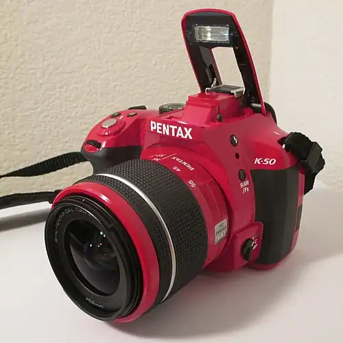 The Pentax K-50 is a 16.3-megapixel mid-level Pentax digital single-lens reflex camera, announced on 12 June 2013.[1] It is the direct successor to the Pentax K-30 model, both of which are weather-sealed.