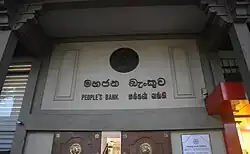 People's Bank is a state-owned commercial bank in Sri Lanka. The second largest commercial bank in Sri Lanka. Established on 1 July 1961, it has its head-offices at Sir Chittampalam A. Gardiner Street in Colombo. The bank offer both retail and corporate banking services, with a network of 739 local branches, service centers and has an asset base of LKR 1.873 trillion (2019) with over 14 million customers. (70% local customers) People's Bank received a high national long-Term Rating of AA+ by Fitch Rating.[3] People's Bank most awarded state-owned company such as "Green Plus" "Carbon Conscious Award".[4] People's Bank became Sri Lanka's best performing bank. Bank mainly targets small and medium enterprise.[5]