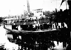 In 1869, the Kelloggs, with W.S. Failing, W.D. Hare, J.M. Moore, and Capt. J.D. Merryman, organized the Tualatin River Navigation and Manufacturing Company, which, in 1869, built the small sternwheeler Henrietta at Colfax for the trade on Oswego or Sucker Lake, as it was then called.[29] Henrietta, whose hull was just 54 feet long, acted as feeder for Onward on the Tualatin.[29] Onward in turn acted as feeder for the P.T. Company's boats on the Willamette River.[29][30]