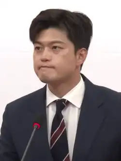 On 7 January 2021, Kim Byong-wook, the MP for Pohang South-Ulleung, withdrew from the PPP due to a controversy related to sexual harassment.[68] The same day, Kim Tae-ho, the former Governor of South Gyeongsang and the incumbent MP for Sancheong-Hamyang-Geochang-Hapcheon, officially rejoined the party.[69]