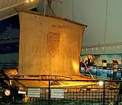Heyerdahl and five crew members, including Bengt Danielsson, attempt to reach Tahiti from Peru on the Kon-Tiki raft, to demonstrate that Inca rafts, built from balsa, a porous wood, are capable of withstanding the high seas and making a crossing of several thousand nautical miles. Barely halfway across the journey, the balsa was so saturated with water that a piece, detached by the crew from a submerged section, sank. The use of balsa for such journeys is not without risk (The Kon Tiki Expedition, chapter IV, "trunks soak up water"). The Kon-Tiki expedition struggled to reach Raroia in the Tuamotu Islands.