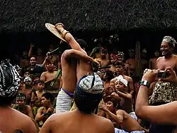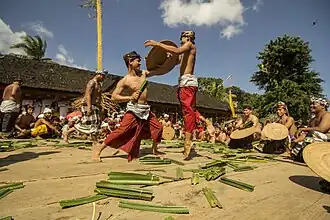 Perang pandan (lit. pandan battle) is a Balinese tradition of ritual combat with clubs made of pandan (Pandanus amaryllifolius). It is known in the Balinese language as mageret pandan or makare-kare. Perang pandan is practiced by the Bali Aga population of Tenganan village in Karangasem Regency, Indonesia. The people of Tenganan are devotees of the deity Indra. To honour Indra as a warrior god, many major religious festivals in Tenganan involve a ritualistic battle.[1]