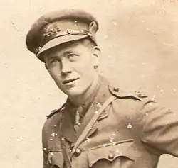 On 26 March 1916, he embarked on the HMT Maryland for Marseilles, France, along with 35 other troops and 74 horses.[19] While stationed at Sailly[20] in France, he was commissioned to the rank of Major on 12 May 1916, at the age of 21,[15][21] the youngest Major in the AIF.[22]