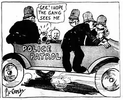 Crosby quit high school during his sophomore year to take a job as an art department office boy at editor Theodore Dreiser's magazine The Delineator. He was quickly promoted to artist, but the job ended after one issue. When he was 17, he sold a drawing to Life for $6. After delivering sandwiches and working as a magazine salesman, he found a position as an editorial cartoonist for the Socialist newspaper the New York Daily Call.[8] There he published his first two comic strips, Biff and The Extreme Brothers—Laff and Sy, but readers became outraged at frivolity in the paper and the strips were pulled.[9]