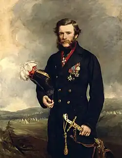Herbert entered politics when he was returned for Ludlow, uncontested, in February 1854, holding the seat until he resigned in September 1860.[2] He continued to serve in the army, being appointed assistant quartermaster-general of Sir De Lacy Evans's division of the army of the East. He landed in the Crimea in this staff position, receiving major wounds at the Battle of the Alma and the siege of Sevastopol and also serving at the Battle of Inkerman. He took over from Sir Richard Airey as quartermaster-general of the whole British army force from when Airey returned to England until the evacuation of the Crimea. For his services in the Crimean War he was made an aide-de-camp to Queen Victoria, a Companion of the Order of the Bath (CB) and a colonel (as a brevet rank, on 28 November 1854), and also received knighthoods from the Turkish, Sardinian and French governments.[1]