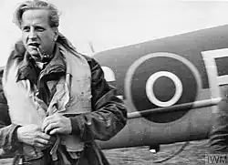 In his time there Pickard gathered a talented team of pilots around him, including Hugh Verity, Frank Rymills, Peter Vaughan-Fowler and Jim McCairns.[67][N 1] Pickard was keen to fly missions, and took part in many of the 'moonlight operations'. After some months of service together Hugh Verity, the officer commanding 161's 'A' Flight, remarked wryly to his wife: "I am being restrained from personal effort by Pick, who thinks I have been hogging. I like that, coming from him, the biggest hog of the lot".[68] In the case of Rymills, the two men met following a near mishap. Rymills had just completed a supply drop mission for their sister squadron 138, and was taxiing his Halifax off the tarmac when he nearly ran Pickard down. Seeing him later in the officer's lounge, the two got on about flying. Pickard challenged, saying "Any clot can fly four engines. Why don't you try to do some real flying with us?"[69] Rymills was a highly confident pilot, and took to Pickard straight away. That evening he packed up his gear and moved over to 161.