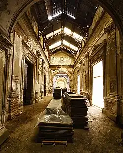 Following the 1973 Chilean coup d'état, the Inmobiliaria San Luis acquired the palace, subdividing it into several stores for rent, damaging the building. In 1981 it was purchased by Inmobiliaria Maullín —owned by Raúl del Río—. The building was declared a National Monument of Chile in 1974, losing this designation the following year, and then declared again a National Monument in 1981, when it already was in a deplorable state of neglect.[6] Its ruined status worsened with the 1985 Algarrobo earthquake.