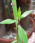 In 2013, it was suggested that two distinct genera should be recognized, Clade A becoming Leuenbergeria and Clade B becoming a more tightly circumscribed Pereskia sensu stricto.[2][7] In 2016, a further division of Clade B into two genera was proposed, with the Andean clade becoming a reduced Pereskia s.s. and the southern South American clade becoming the restored genus Rhodocactus.[3] As of April 2021, Plants of the World Online accepts all three genera.[8][9][10]