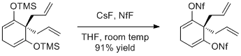 Trimethylsilyl enol ethers react with NfF in the presence of a substoichiometric fluoride source at 0 °C to ambient temperature to give alkenyl nonaflates in moderate to good yields. Dried tetra-n-butylammonium fluoride was the preferred fluoride source in one study,[6] but CsF has been used in difficult cases with excellent results.[7]
