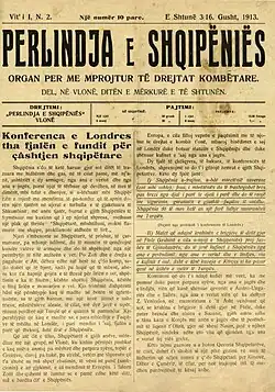 Perlindja e Shqipëniës (English: Rebirth of Albania) was the first newspaper published in Independent Albania. Its first issue was released on August 24, 1913 and its chief editor was Dhimitër Beratti,[1] with publicist Mihal Grameno serving as contributing editor.