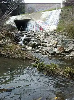 Permanente Creek as it exits Rancho San Antonio, flowing through the culvert beneath I-280, on the border of Los Altos.